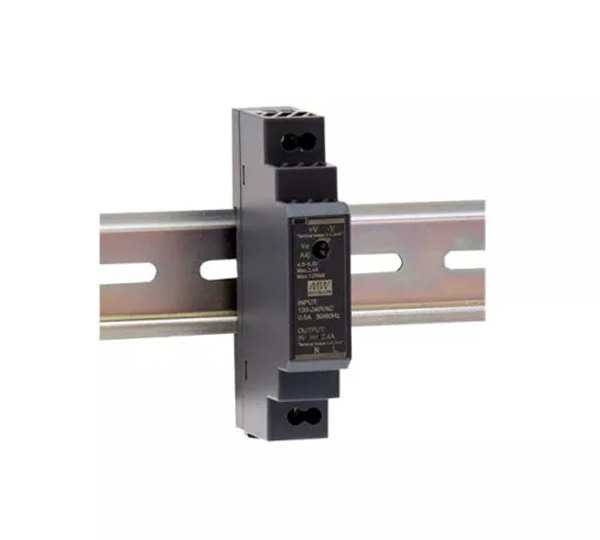 Особенностью данного блока питания является то что он предназначен для крепления на DIN-рейку (стандартный металлический профиль который используется для крепления электрических и электронных устройств в шкафах и щитах). Блок снабжен защёлками, которые легко фиксируют его на рейке.